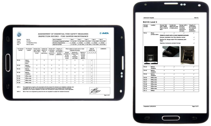 In this example inspection we’ve defined two reports: a compact council certification report to record compliance status, and a more detailed owner’s report that includes photos and defects.